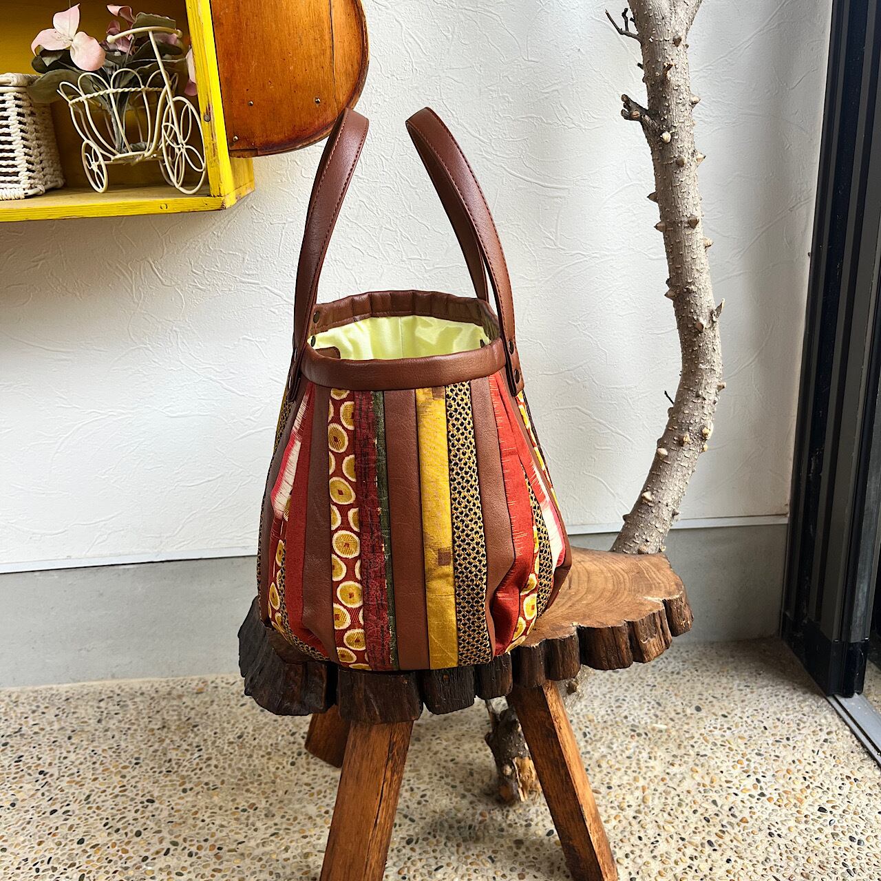 革と古布のパッチワークバッグ(ブラウンの革+着物生地)No.01016-80