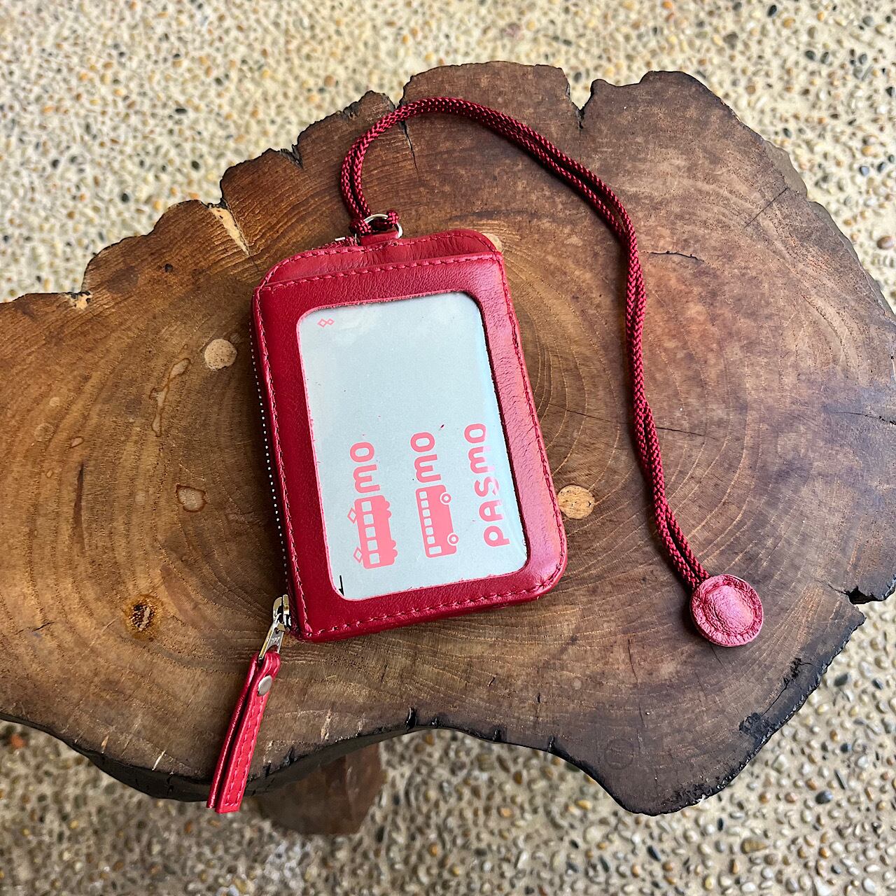 裏表両面にカードポケットがあり、間に小銭等が入るファスナーポケット付きのパスケースです。