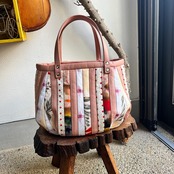 革と古布のパッチワークバッグ(ピンク)01016-93