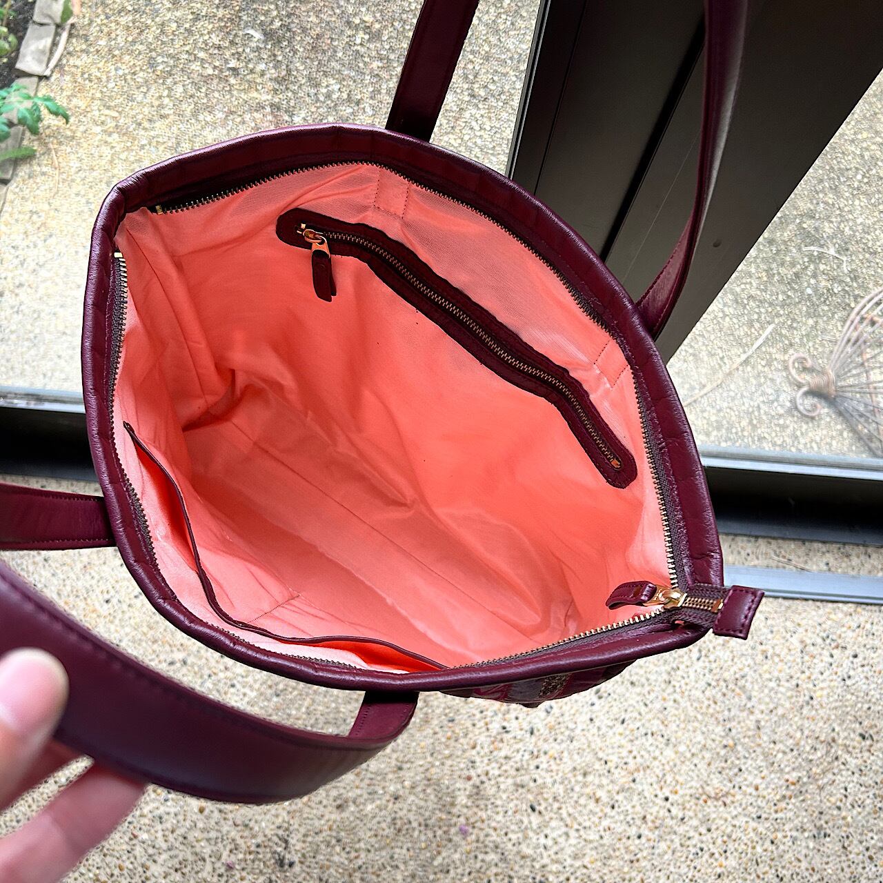 革と古布のパッチワークトート(濃いエンジ)01021-08