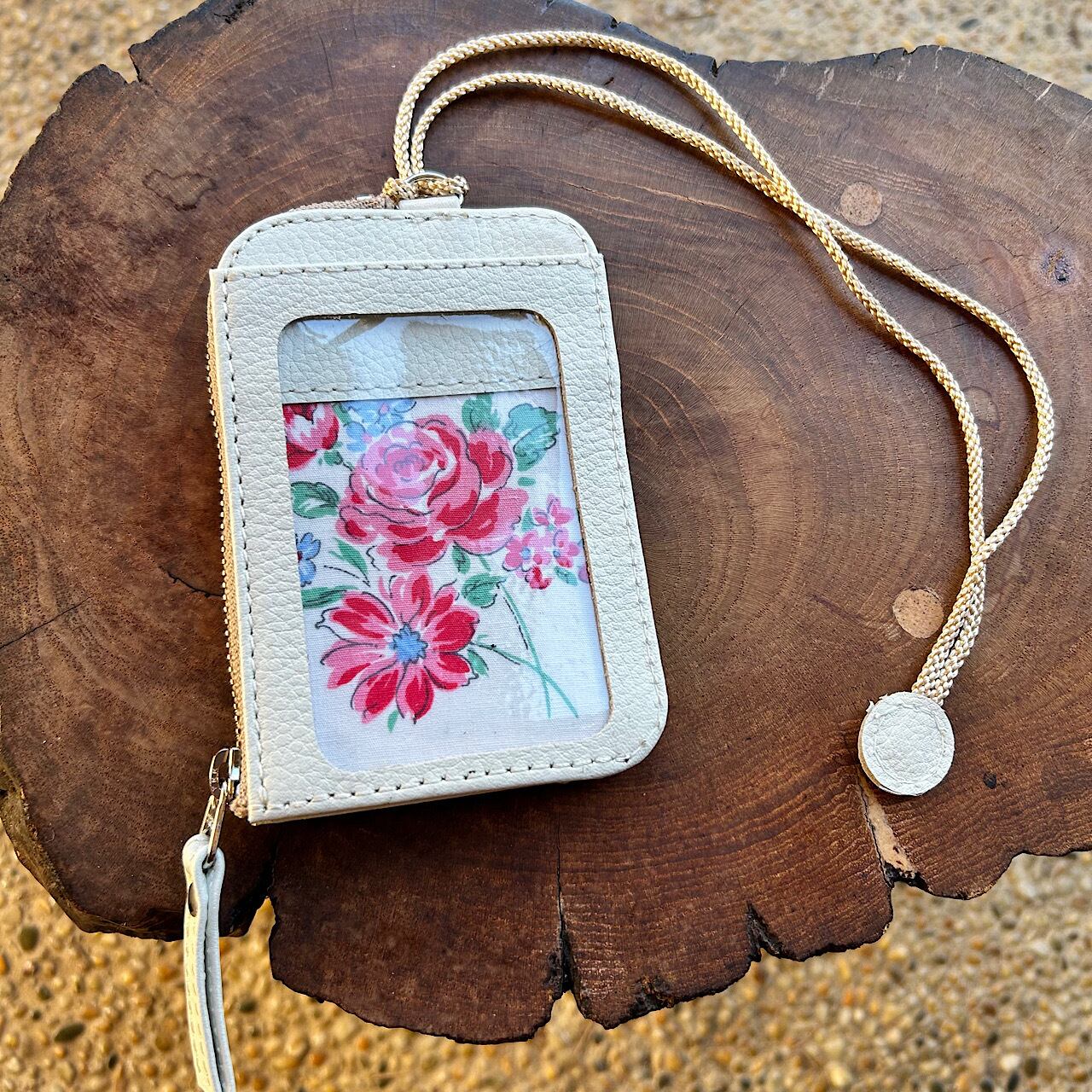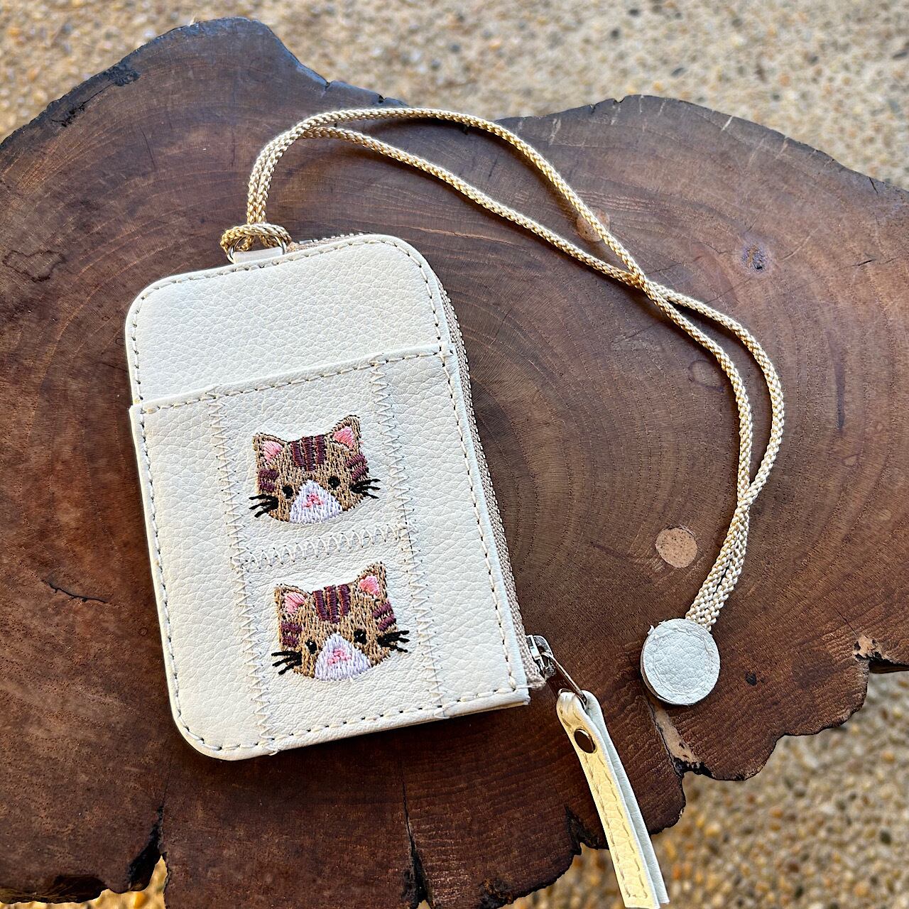 パスケース2枚用 小銭入れ付き(ホワイトの革に茶トラ猫の刺繡)03003-42
