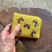 黄色の牛革に茶トラ猫の刺繡を施して 素敵なコンパクト財布が出来上がりました。