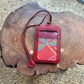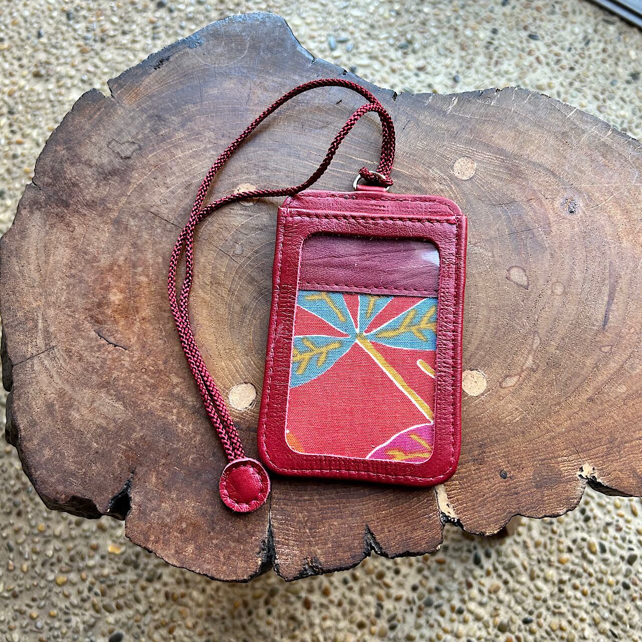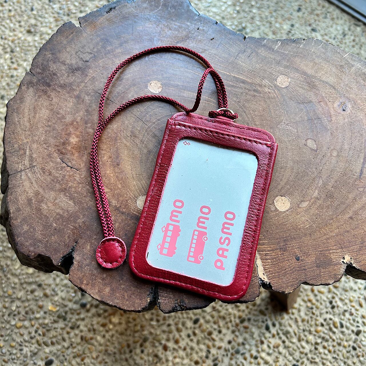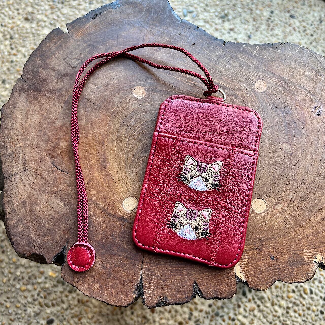 両面パスケース(ワインレッドの革に茶トラ猫の刺繡)2枚用 03005-17